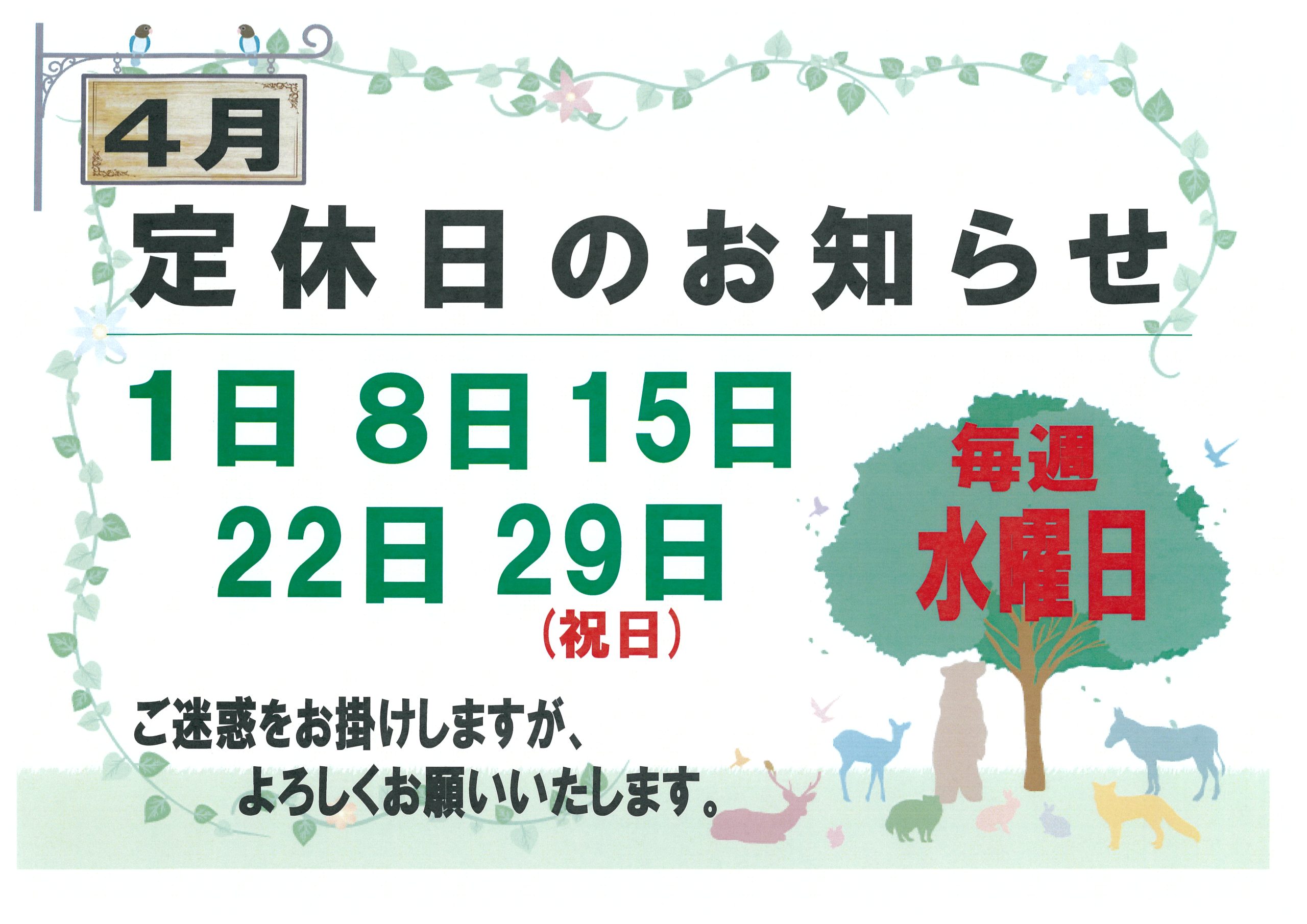 🌸4月の定休日のお知らせ🌸