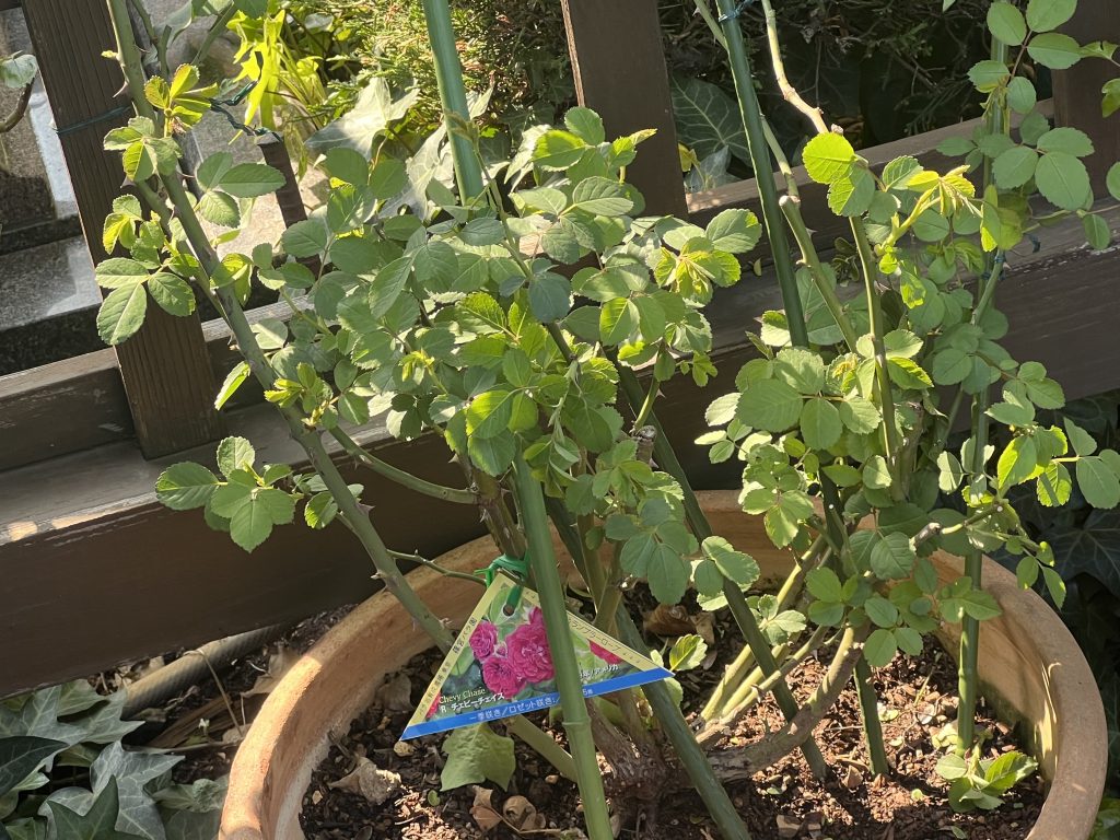 薔薇の葉っぱが少しずつ増えてきました。春の光を浴びて、元気に育っています🍃
