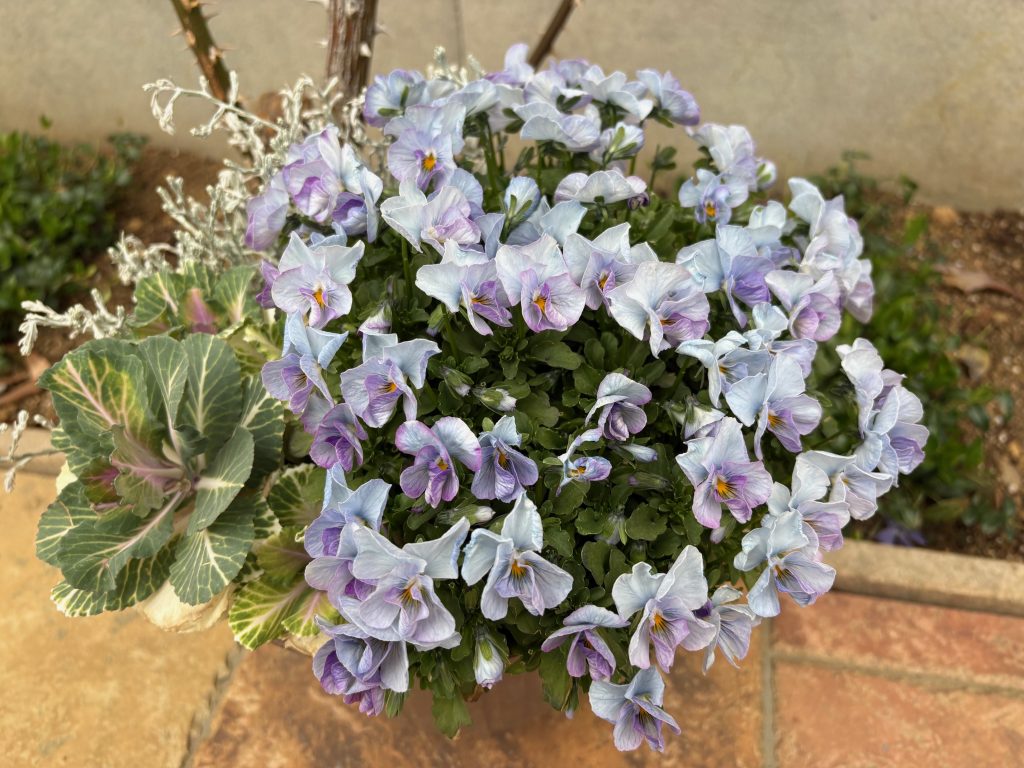 ↑植栽スタッフが植え込んでいるビオラ